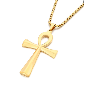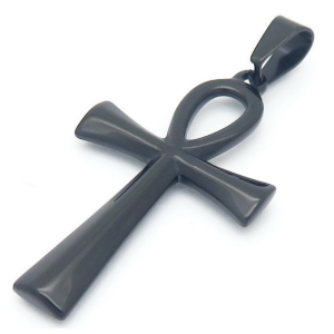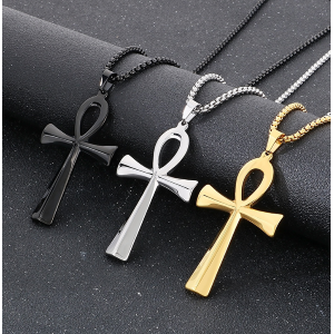 Collana in acciaio con ciondolo ankh con finitura lucida, noto anche come "chiave della vita.