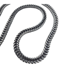 Collana in acciaio invecchiato, maglia "spiga" piatta
