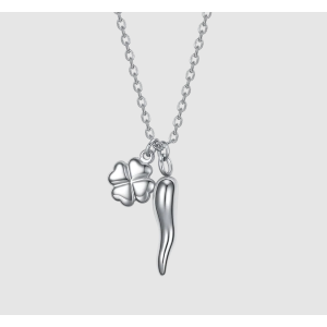 COLLANA IN ACCIAIO QUADRIFOGLIO E CORNETTO PORTA FORTUNA