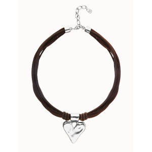 Collana in filo di seta e pelle con dettaglio di cuore placcato argento