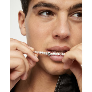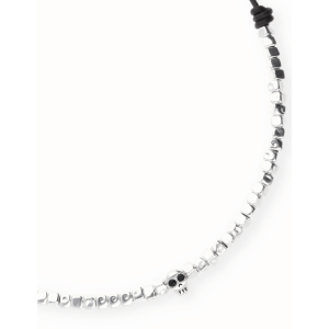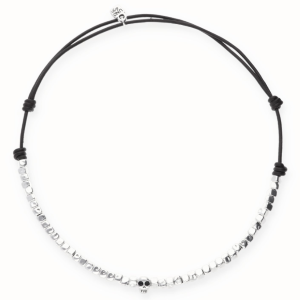 Collana in pelle e perline con dettaglio teschio.Gioielli, teschi e rock and roll. La collezione Ser imparable è pensata per far uscire il tuo lato punk, quello che preferisce chiedere scusa anziché chiedere il permesso, che avanza senza sosta dando sempre il massimo. Se il caos, il rumore, i suoni elettrici sono parte di te e vivi ogni giorno alzando il volume al massimo, Ser Imparable è la collezione che ti attende su un palcoscenico come una vera rockstar.