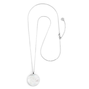Collana acciaio con pendente in madreperla di 3 cm di diametro e logo Be Woman sul retro. Lunghezza 75 +5 cm con regolatore Collezione Woman Chic 24 Materiali : acciaio, madreperla