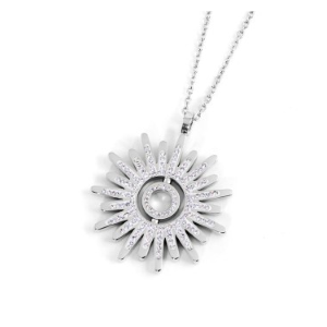 Anello centrale ruotabile, fronte cristalli bianchi e retro madreperla, diametro sole 30mm