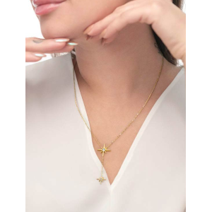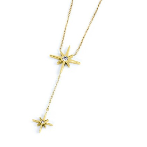 Collana Y in acciaio con catena cross e con 2 pendenti a forma di rosa dei venti. Dimensione rosa dei venti 15 e 10 mm