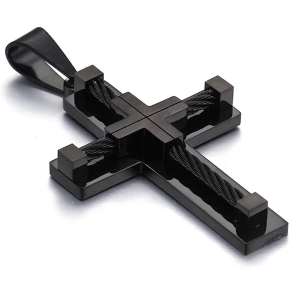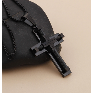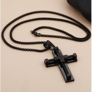 Collana uomo con pendente a forma di croce con placcatura in acciaio titanio
