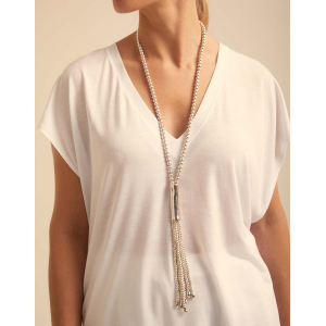 La collana Waterfall è formata da una catena a sfere con un ciondolo di tubuli definito da un cristallo grigio centrale. Dal ciondolo pendono quattro fili formati da sfere che raffigurano una frusta. Questa collana è realizzata in Spagna secondo un processo interamente artigianale, utilizzando una lega di metalli placcati argento. Crea un look perfetto abbinando questa collana agli altri pezzi della collezione Fearless.