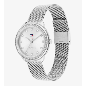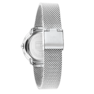 Orologio da donna Tommy Hilfiger della collezione Demi. Il movimento dell'orologio è al quarzo. La cassa è in acciaio PVD argento, diametro 32 mm. Il bracciale è in acciaio PVD oro. Il quadrante è di colore oro. La resistenza all'acqua è di 3 ATM / 30 metri. Referenza: 1782698
