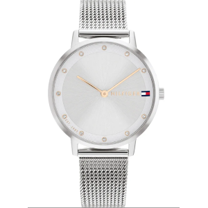 Orologio analogico da donna del brand Tommy Hilfiger della collezione Pippa. Orologio con cassa in acciaio inossidabile argento e quadrante argento con diametro di 34mm, il cinturino è in acciaio inossidabile argento, la resistenza all'acqua è di 3 ATM.