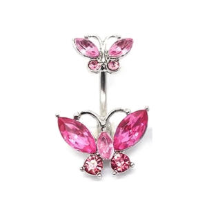 PIERCING OMBELICO IN ACCIAIO CON DOPPIO ZIRCONE INCASTONATO FARFALLA