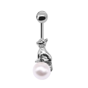 Questo simpatico piercing è realizzato in acciaio inossidabile 316L, e presenta un pendente a forma di gattino posizionato su una perla.