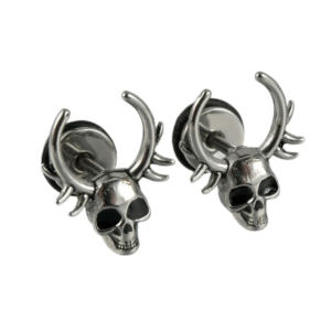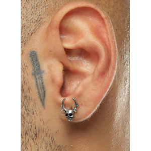 Mono orecchino in acciaio Skull&Deer Antlers