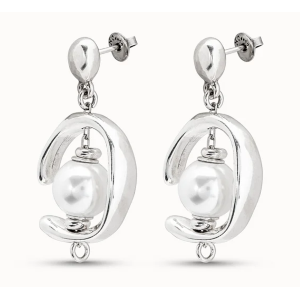 Orecchini a cerchio placcati argento Sterling con al centro una perla bianca. Prodotti in modo artigianale in Spagna. .