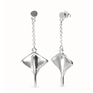 Orecchini lunghi placcati in argento sterling con una manta.Ottieni ora i pezzi della collezione Se Majestuosa, un omaggio all’isola di Porto Rico e ai suoi abitanti, rappresentato dall’eleganza del fluttuare tipico della manta.