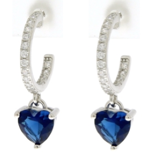 Orecchino in argento 925 rodiato, cerchietto (ø 13 mm) con zirconi e cuore pendente.