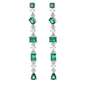 Orecchino in argento 925 rodiato con punti luce di zircone bianco e zirconi colorati di forme diverse.