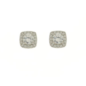 Orecchino in argento 925 rodiato, quadratino con zirconi bianchi.