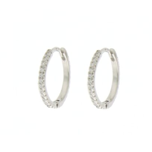 Orecchino in argento 925, scattino (ø 15 mm) con zirconi bianchi.