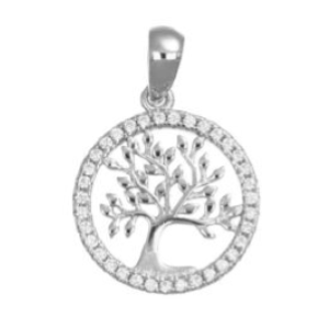 Pendente in argento 925 rodiato con albero della vita e zirconi bianchi (ø 15 mm).