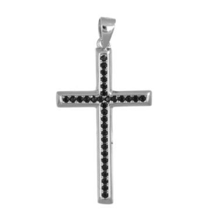 Pendente in argento 925 rodiato, croce con zirconi neri.