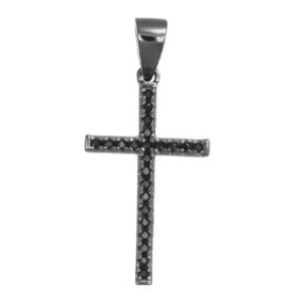 Pendente in argento 925 rodiato, croce con zirconi neri.