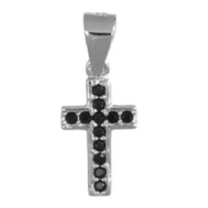 Pendente in argento 925 rodiato, croce con zirconi neri.