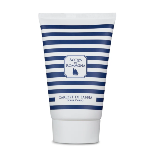 Carezze di Sabbia è uno scrub cremoso con microgranuli vegetali, burro di karité e vitamina E. Esfolia e nutre la pelle, lasciandola luminosa e vellutata, rievocando la sensazione della sabbia sulla pelle durante le vacanze estive in Romagna.