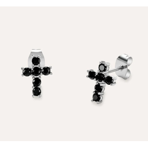 Orecchini Lobo Croce Man Code Acciaio Cristallo Nero 1694931