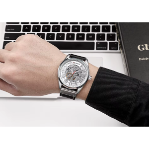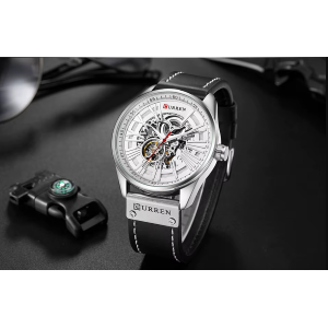 Curren London® Questo orologio da uomo meccanico a carica automatica Curren è la nostra nuovissima collezione. Stile puro al suo meglio, cassa esterna in metallo lucido e lucido con quadrante interno a carica automatica descrive la bellezza di questo segnatempo. Una custodia posteriore trasparente attaccata a un cinturino in pelle della migliore qualità supera di classe molte altre marche premium. Questo classico orologio attuale rappresenta il nostro marchio come il più conveniente con un design premium. Orologio da uomo Curren progettato in modo ordinato e attento, otterrai un orologio di alta qualità Curren a questo prezzo. Questo pezzo richiede un posto nel guardaroba dei tuoi orologi.