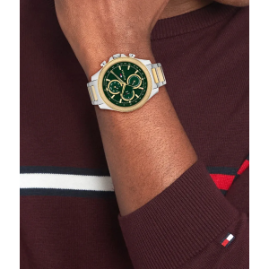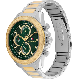 Questo orologio Tommy Hilfiger ha una cassa in Inox con un diametro di 46 mm ed è dotato di un cinturino in Metallo. All'interno della cassa si trova un movimento di Seiko Instruments Inc. e l'orologio è dotato di un cristallo di Minerale.