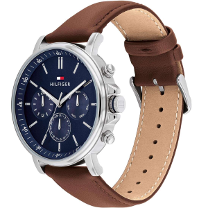 Orologio da uomo del brand Tommy Hilfiger. Cinturino in pelle di colore marrone. Cassa rotonda di colore acciaio con diametro 43. La referenza è: 1710585