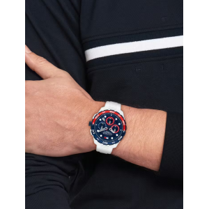 L'orologio da uomo Tommy Hilfiger è una vera icona di avventura e precisione. Il suo case da 44mm con quadrante trasparente dimensionale, indici di punti in grassetto e cornice sportiva rotante è progettato per l'azione. Il retro personalizzato TH-Regatta e le cinghie in silicone blu navy, bianco o nero danno vita allo spirito del mare, mentre il movimento cronografo giapponese garantisce che ogni momento venga catturato con precisione.