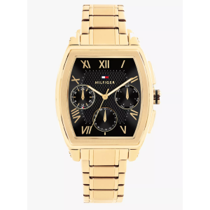 Orologio da uomo Tommy Hilfiger. Tutto è nei dettagli con il nostro ultimo orologio elegante. Questo orologio presenta un quadrante opaco a raggio sole con numeri romani, sottotitoli CD tagliati e movimento multifunzionale giapponese che mostra registri feriali, 24 ore e data. Guardando meglio il quadrante, noterai dettagli in rilievo ispirati alla texture della camicia Oxford.