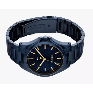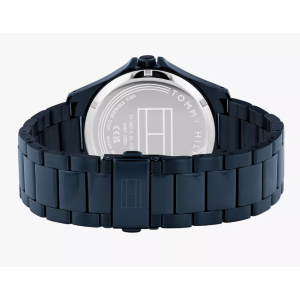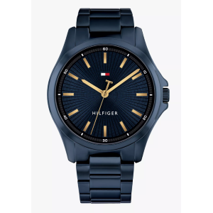 Orologio da uomo Tommy Hilfiger. Ogni uomo ha bisogno di un orologio firmato per tutti i giorni. Non cercare oltre il nostro versatile orologio sportivo con un quadrante a raggio sole pulito e testurizzato e un marchio sottile come si vede nella "T" ampia sulla terza lancetta.