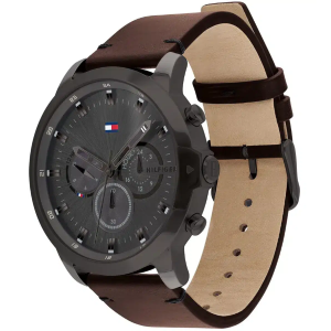 Orologio da uomo di Tommy Hilfiger della linea jameson e della collezione fw20. Orologio con cassa rotonda da 46 mm in acciaio nero di colore nero. Il cinturino è in pelle di colore marrone. Orologio multifunzione, vetro minerale e impermeabilità di 3 atm. La referenza è 1791799