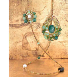 Composizione: Agata, Aventurina, Ottone placcato in oro, Crisoprasi, Giada, Malachite, perle di vetro di Murano, Perle d'acqua, Zirconia.