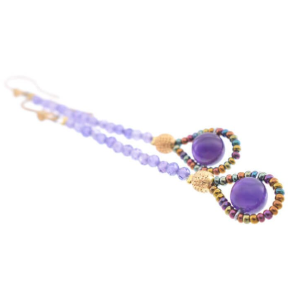 Gli orecchini BLOOM L Viola sono un'opera d'arte unica, realizzata a mano con cura e attenzione ai dettagli. Questi orecchini sono un sottile filo di perline viola sfaccettate di zirconia con una splendida pietra di ametista.