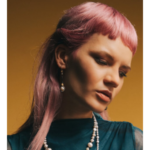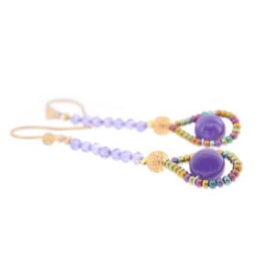 Un sottile uncino argentato e dorato ospita il logo Ziio. Gli orecchini Bloom M Viola sono lunghi 6 cm.