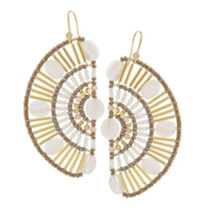 Gli orecchini BOMBAY White sono un'opera d'arte unica, realizzata a mano con cura e attenzione ai dettagli. Questo gioiello presenta una combinazione di pietre semipreziose, perle, perline di vetro di Murano e Silver 925 per gli uncini.